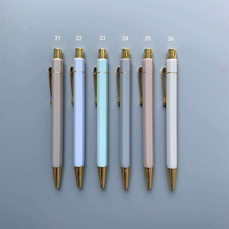 This ballpoint pen is made of quality ABS and features a hexagonal shape for a non-slip grip when writing. The entire pen body is solid in color, without any additional pattern or design, except for the golden tip and top. It is a retractable ballpoint pen, simply requiring a gentle press to start a smooth writing. One of its key features is the extensive range of colors, i.e. 75 colors available for you to choose from. You can choose to wholesale the pens with your preferred colors directly or personalize the pens by printing your own logo on. In addition, each pen comes with a perspective pen box made from PP material, making it a good gifting choice. If you would like to place an order, submit your inquiry and let us know the color codes you have chosen as well as your detailed requirements. We will respond to you as soon as possible!