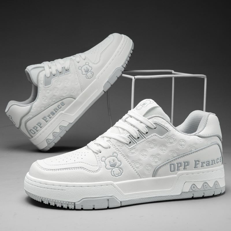 Available in three versatile color combinations—black and white, pure white, and white with green accents—these shoes offer a range of options to suit your individual taste. Featuring an embossed bear pattern on the upper, these shoes offer a playful yet stylish touch to your outlook. What's more, the bear pattern is luminous in the dark, adding a unique and trendy element to your footwear collection. Inside, the shoes are lined with natural fabric that wicks away moisture and prevents odor buildup, keeping your feet feeling fresh and comfortable all day long. Additionally, the PU upper is equipped with small ventilation holes, ensuring adequate airflow while maintaining excellent insulation and support. Step out in confidence and style with our classic canvas shoes, designed for both comfort and fashion-forward flair.