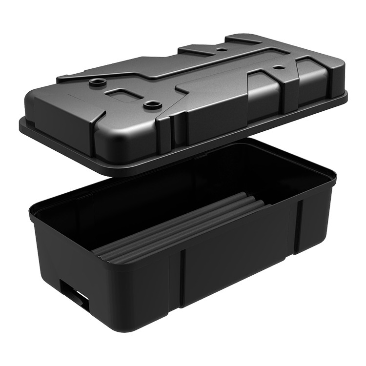 A podium shipping container can be effortlessly converted into a display counter within minutes. It sets up quickly, supports your custom graphic wrap, and includes a rear zipper for convenient storage underneath. Functioning as a case, it features a handle at one end and two wheels at the other, allowing for easy rolling. The molded case is resistant to cracking and puncturing. It can be secured with two straps and flush-mount buckles. Here's how it works: these trade show cases are designed with UPS-friendly dimensions to avoid excessive freight charges. The case has sufficient room inside for various 8ft and 10ft displays. One half of the case becomes the base, and the other becomes the top. The top is supported by four poles that are stored inside the case along with the graphic wrap. Transform the trade show case into a counter by sliding each end of the four poles over their eight mounts (no tools needed), then slip the one-piece stretch graphic over the top, covering the top and sides. Assembly is complete.